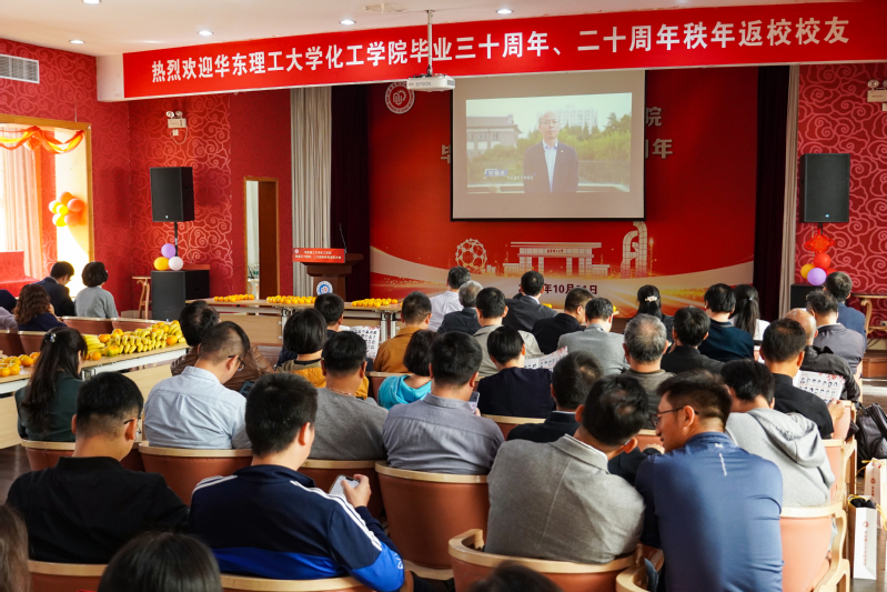 会议伊始,华东理工大学校长轩福贞通过视频向秩年返校校友致辞,并向校友们介绍了学校的事业发展情况。