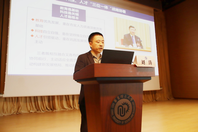 刘涛结合我校“十四五”研究生教育改革发展走向,以“新时代卓越工程人才培养路径探索”为题进行了分享。他介绍了学校研究生教育概况、卓越工程人才培养改革、研究生导师指导规范等方面内容。