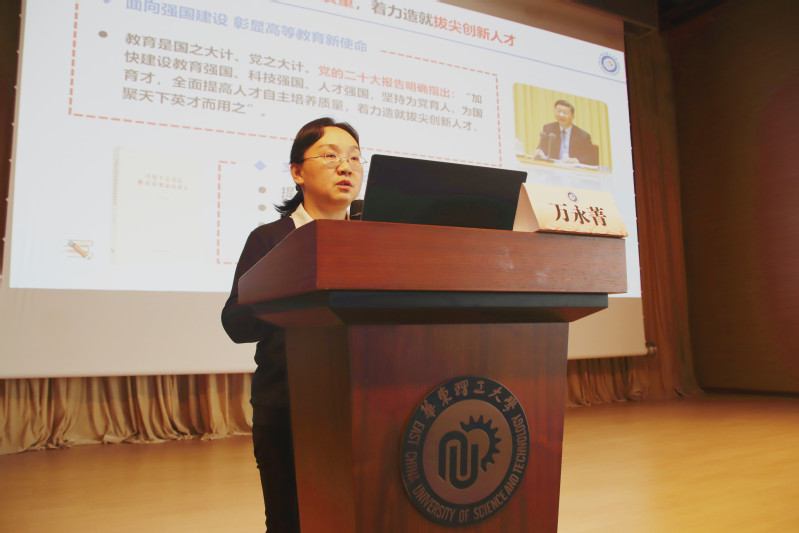 万永菁以“坚守初心,立德树人,开拓本科教育教学新局面”为题进行了分享。她强调,要牢牢把握立德树人根本任务,培养担当民族复兴大任的时代新人,同时要紧紧围绕本科教育这一中心工作,强化本科教学改革,为建设一流本科教育开拓新局面。