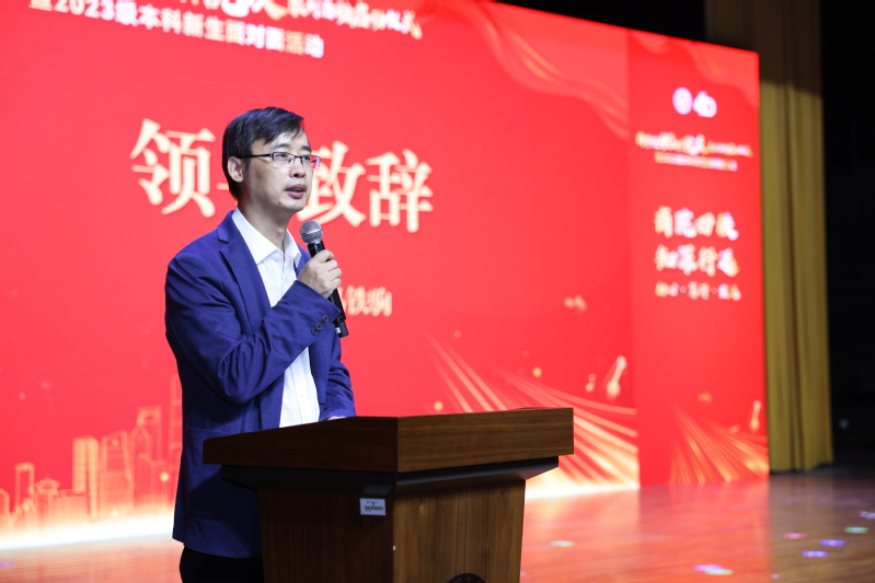 活动伊始,商学院院长马铁驹发表致辞。他回顾了学院四十载的发展历程,指出商学院始终坚持立德树人根本任务,通过“党建+”模式不断拓展“大思政课”实践教学基地,聚焦行业前沿、乡村振兴、大国重器等资源,将“商业”与“科技”的连接融入日常教学,着力培养在社会主义现代化建设中可堪大用、能担重任的栋梁之才。他对2023级新生加入商学院生命共同体表示欢迎,并希望他们坚持学习,扎实学科功底,同时修炼情绪,培养钝感力,强大自我。他勉励同学们在华理这个奋斗旅程的新起点上,以赤诚之心追求卓越理想,以奋斗之姿书写青春答卷。