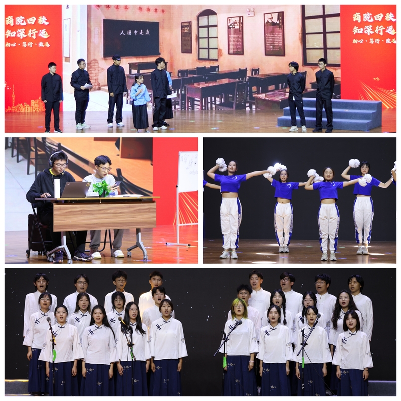 为推动理论学习提质增效,商学院创新性地将理论学习融入文艺表演,用“学习+文艺”的方式寓教于乐,做到理论学习入脑入心,同时在轻松愉快的氛围中加强教职工与新生的交流,增进师生情谊。2023级新生代表带来的《五四风雷》通过情景剧的形式引领新生在家国故事的浸润中牢记历史、传承使命、主动担当。防诈骗主题情景剧《学习捷径》通过生动形象的表演引导师生增强防诈意识、提升防诈本领。心理剧《三十七度灰》讲述了两个正在经历迷茫与伤感的学生通过互换人生理解家人、重拾热爱、强大内心的故事。志愿服务主题节目《年轻的力量》融合情景剧与舞蹈表演形式展现了奉献、友爱、互助、进步的志愿者精神。其他合唱及舞蹈表演亦是精彩纷呈,赢得阵阵掌声。活动最后,由退休教师、新生班导师、思政辅导员和学生代表共同朗诵《写给未来的你》,用充满诗意和力量的语言激励大家坚定信仰、追逐梦想。