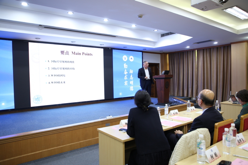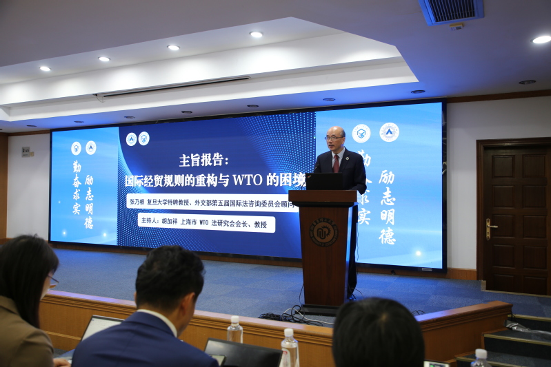 复旦大学特聘教授、外交部第五届国际法咨询委员会顾问张乃根围绕“国际经贸规则的重构与WTO的困境”作了主旨演讲。他从研究会以WTO法为学术研究对象的初衷和创建历史出发,引出了目前国际经贸规则的困境,分析了未来WTO改革的难点和路径。