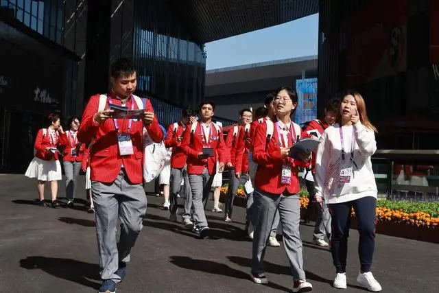 2023年,上海团市委从全市42所学校招募了5725名进博会会期志愿者。11月1日上午10点,同济大学20名“小叶子”从国展中心16米层出发,每人手上拿着巡馆打卡纸。再次进馆,他们需要完成岗前培训“啄木鸟”系列行动之二:日行千里。而为照顾好学校140名“小叶子”,华东理工大学贴心地为志愿者们准备了大礼包,内含徽章、运动鞋、专属帆布包、肩枕、眼罩等等。上海电机学院团委表示,本届进博会144名“小叶子”中,有25名参加过往届进博会志愿者服务,以老带新,力求将志愿者工作做得更好。