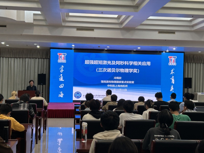 近日,由校长办公室、教务处、党委学生工作部主办,物理学院承办的通海讲堂(第100讲)在奉贤校区通海厅开讲。中国科学院上海光学精密机械研究所(以下简称“上海光机所”)强场激光物理国家重点实验室主任冷雨欣研究员应邀作了题为“超强超短激光及阿秒科学相关应用(三次诺贝尔物理学奖)”的专题报告。来自我校物理学院、化学学院、机动学院、生物工程学院等百余名师生参加了学习,报告会由物理学院党委书记钮月萍教授主持。