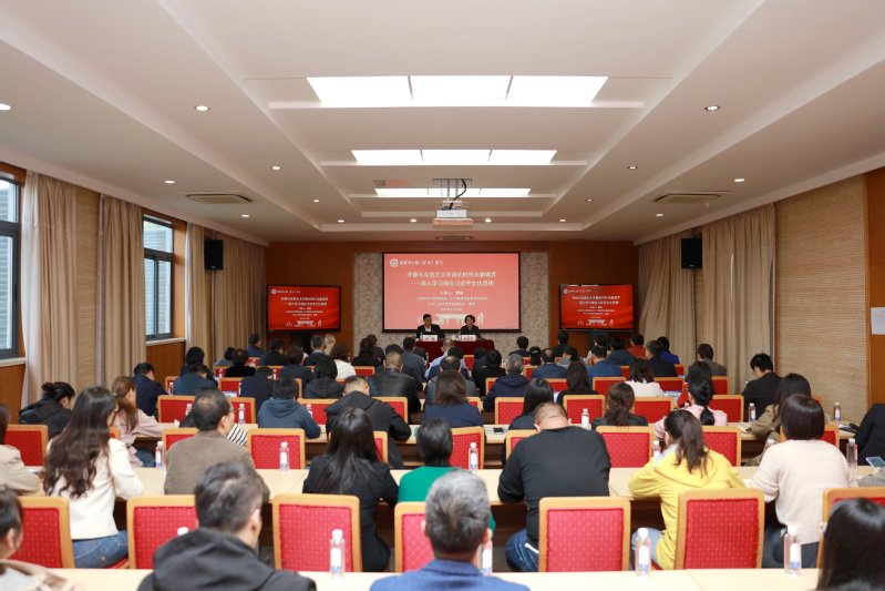 文化关乎国本、国运。习近平文化思想为担负起新的文化使命提供了强大思想武器和科学行动指南。11月8日下午,校党委中心组(扩大)学习会在和平楼第二会议室举行。上海市学习贯彻党的二十大精神专家宣讲团成员、市委党校副校长曾峻教授应邀作“开辟马克思主义中国化时代化新境界——深入学习领会习近平文化思想”的专题辅导报告。校党委书记杜慧芳主持会议并讲话。校长、党委副书记轩福贞,党委副书记、纪委书记龚跃,党委常委、副校长阎海峰,党委中心组成员、正处级干部、各二级党组织宣传委员、机关干部教师等80余人参加学习。