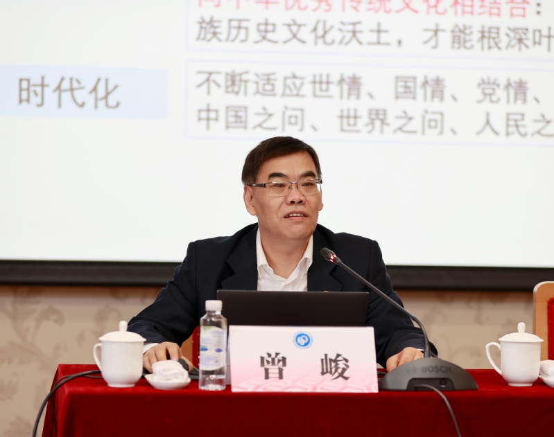 报告中,曾峻围绕“‘两化’的基本途径是‘两个结合’”“习近平文化思想的科学体系”“建设习近平文化思想最佳实践地”等3方面内容,对习近平文化思想的丰富内涵进行了深入的辅导解读。曾峻从马克思主义中国化时代化的根本途径入手,分析了“两个结合”的必然性、重要性和历史性成就,介绍了习近平文化思想是新时代党领导文化建设实践经验的理论总结,构成了习近平新时代中国特色社会主义思想的文化篇,是马克思主义中国化时代化在文化领域的最新成果。同时,结合上海市宣传思想文化工作会议精神,曾峻从“用好丰富的文化资源、坚持党的文化领导权、为理论创新贡献力量”等角度,阐释了学习贯彻习近平文化思想,打造文化自信自强上海样本的体会和认识。