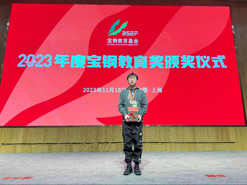 11月18日,2023年宝钢教育奖举行颁奖仪式,华东理工大学物理学院2020级本科生唐桤泽荣获2023年度宝钢优秀学生特等奖。宝钢优秀学生特等奖每年全国仅评选25名,其中本科生15名,研究生10名,我校本科生已连续5年获此殊荣。此外,商学院2020级本科生贾欣语、化学与分子工程学院2019级博士生刘帅君、材料科学与工程学院2019级博士生蔡乐乐、社会与公共管理学院2022级硕士生张璟垚荣获2023年宝钢优秀学生奖。
