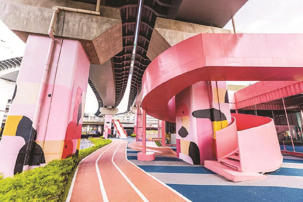 在论坛上,也有学者谈到,当一些建筑被赋予可以消费的商业属性时,这种空间作为商品被付费使用的形式,往往也会带来更高的“人的到场率”,一些城市的“边缘空间”也因此被盘活。洛克公园北新泾馆就是典型案例。这片苏州河中环桥下的空间经过重新规划改造,拥有粉色的“火烈鸟”、深黄色的“猎豹”和黑白条纹的“斑马”三个象限,曾在2021年获评长三角及全国部分城市“最美公共文化空间”,一度是社交平台上“好拍”的代名词。如今,其中一些体育场馆向公众有偿开放,每到周末都颇为热闹。
