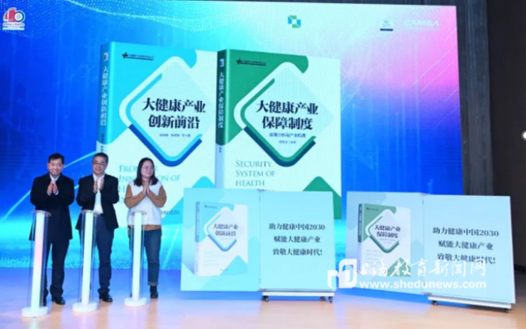 本次论坛还发布了由华东理工大学副校长阎海峰主持和策划的大健康产业管理系列丛书前两册,分别为《大健康产业前沿》和《大健康产业保障制度》。阎海峰、华东理工大学社会与公共管理学院教授龚秀全、北京大学出版社代表任京雪一同为丛书发布进行揭幕。这一系列丛书旨在从理论和实践角度深入探讨大健康产业的发展和管理,为大健康产业的创新和为大健康行业人才的培养奠定坚实的教学基础。