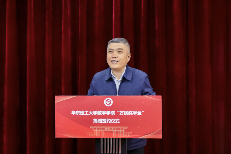 李涛在讲话中代表学校对方民的慷慨捐赠表示感谢。他指出,方民老师坚守“立德树人”的初心和使命,坚持38年如一日在教学科研一线,并捐资设立奖学金,助力学院和学校人才培养,充分展现了个人的高尚情操和对教育事业的热爱之情,也体现出以方民老师为代表的华理教师的社会担当和大爱情怀。他希望学院可以用好、管好这笔基金,认真组织好奖学金评选工作,切实发挥好激励和示范作用。最后,他激励数学学院青年学生要永葆坚定不移的理想信念,求知若渴的学习劲头,服务社会的高尚品德,做一名知恩感恩报恩、敢为有为善为的时代新人。