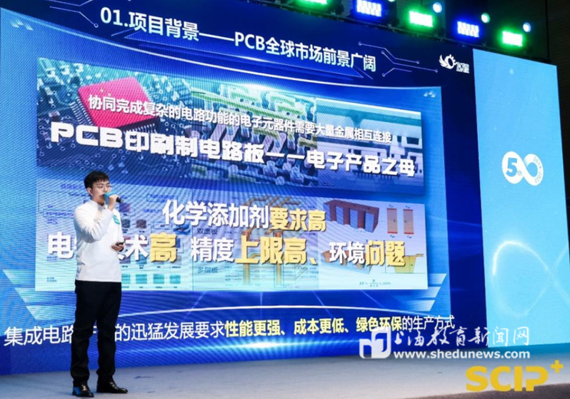 “创业创新组”银奖为华东理工大学“飞镀科技”团队,项目致力于研发高端PCB电镀添加剂,打造绿色环保型电镀铜配方,推动电镀行业绿色环保化发展。据介绍,飞镀科技团队的核心PCB电镀添加剂为原创研发,配方可实现满足高端PCB的电镀工艺,配方低毒低酸、可循环性强、绿色环保。
