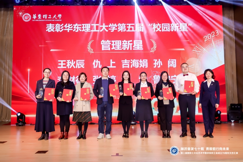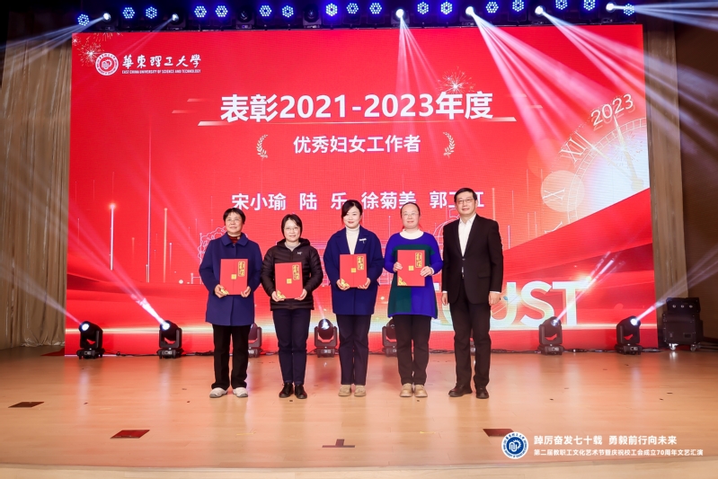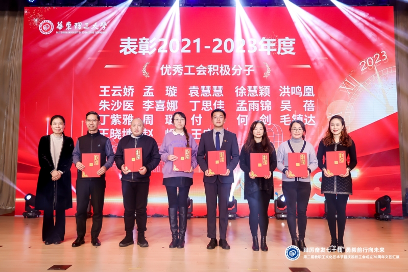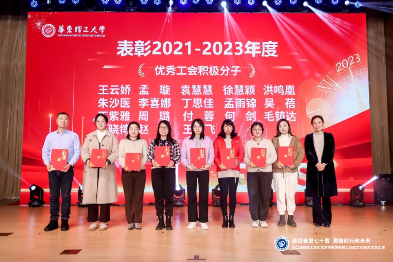 活动中,分别表彰了教职工社团荣誉会长,2021-2023年度优秀工会工作者、优秀妇女工作者、优秀工会积极分子,华东理工大学第五届“校园新星”。通过表彰活动的开展,希望全校教职工以受表彰先进个人为榜样,树立“躬耕教坛、强国有我”的志向和抱负,自信自强、踔厉奋发,为推动学校高质量发展建功立业。