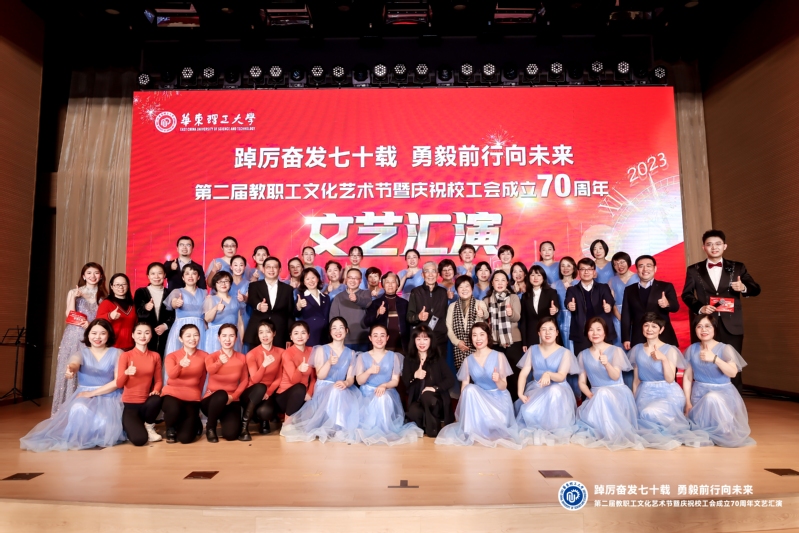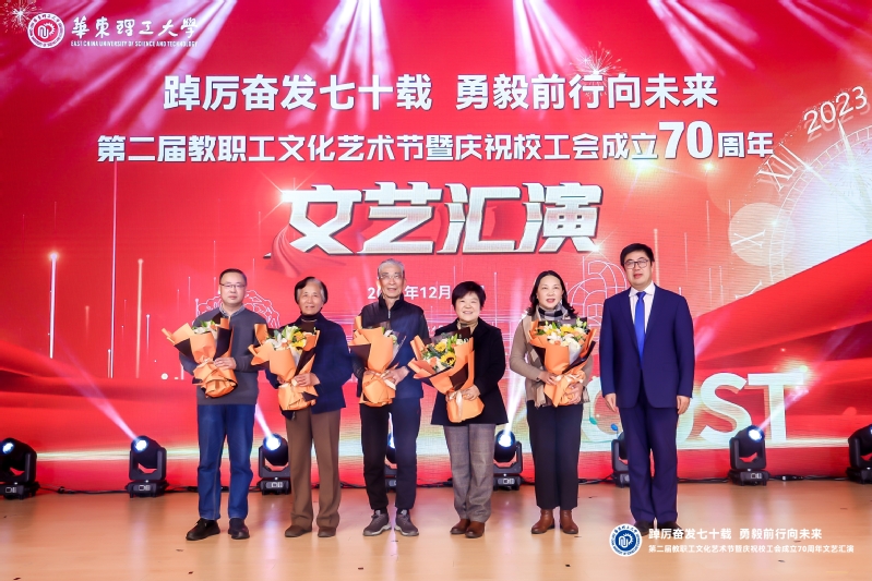 12月19日,华东理工大学第二届教职工文化艺术节暨庆祝校工会成立70周年文艺汇演在商学院大楼406报告厅举行。校党委副书记沈海涛出席活动并讲话,党委教师工作部部长钱嫦萍、校工会常务副主席朱姝、人事处副处长程家高、校团委副书记魏星,以及历任工会主席、常务副主席、副主席,各二级部门工会主席、校园新星获奖者、优秀工会工作者、优秀妇女工作者、优秀工会积极分子,以及晚会演职人员等250余人参加了汇演。