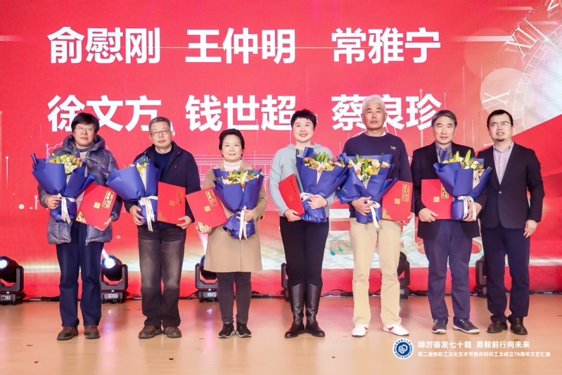 沈海涛代表学校向历任工会主席、常务副主席、副主席献上鲜花并讲话。他提到,工会70周年宣传片非常有共鸣,门外世界门里是家,校工会作为全校教职工的娘家人,传承老一辈工会人的优良传统,为我们提供了一个春意满满的家,感到特别温馨和感动,为所有工会人点赞。