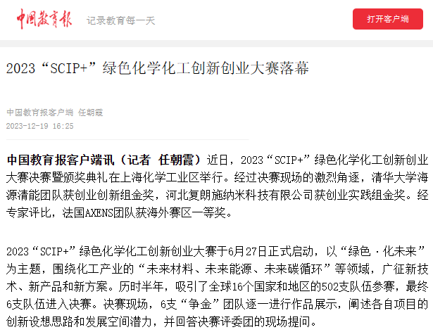 【中国教育报客户端】2023“SCIP+”绿色化学化工创新创业大赛落幕