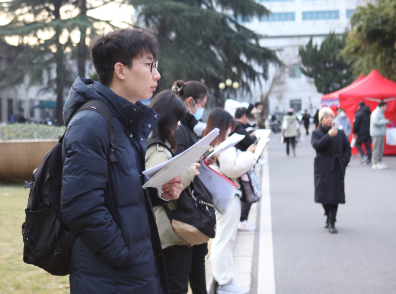 “一‘研’为定”“‘研’途璀璨 终将上岸”……分布在校园里的指示牌上,温馨的祝福话语给追梦考生送去冬日暖阳。