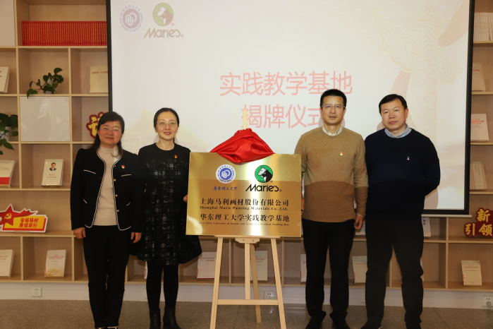 为深入学习贯彻习近平总书记考察上海重要讲话精神,加强长三角校企区域联动,整合科技创新力量和优势资源,持续深耕产教融合“试验田”,探索高校和区域产业统筹融合、良性互动的合作模式,2023年12月28日,在徐汇校区图书馆明德书房,举行材料科学与工程学院与上海马利画材股份有限公司(以下简称“马利画材”)党建联建暨实践教学基地签约揭牌仪式。马利画材董事长兼党支部书记蒋熙洲、总经理兼党支部副书记闫加伟、董事秘书王青青、技术中心主任莫振宇,我校校友与发展联络处副处长王芝眉,上海校友会秘书长章雯吉,材料学院党委书记袁媛、党委副书记兼纪委书记苏建玲、副院长顾金楼、高分子材料系主任周权、复合材料党支部书记章圣苗、党支部教师和学院教师代表参加会议。