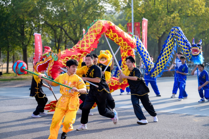 为迎接甲辰龙年,进一步传承中华优秀传统文化,增强文化自信,活动现场特邀体育学院武术队进行舞龙舞狮表演。表演者通过与观众的积极互动,传递出中华民族质朴的价值观及对龙年新年的深深祝福。