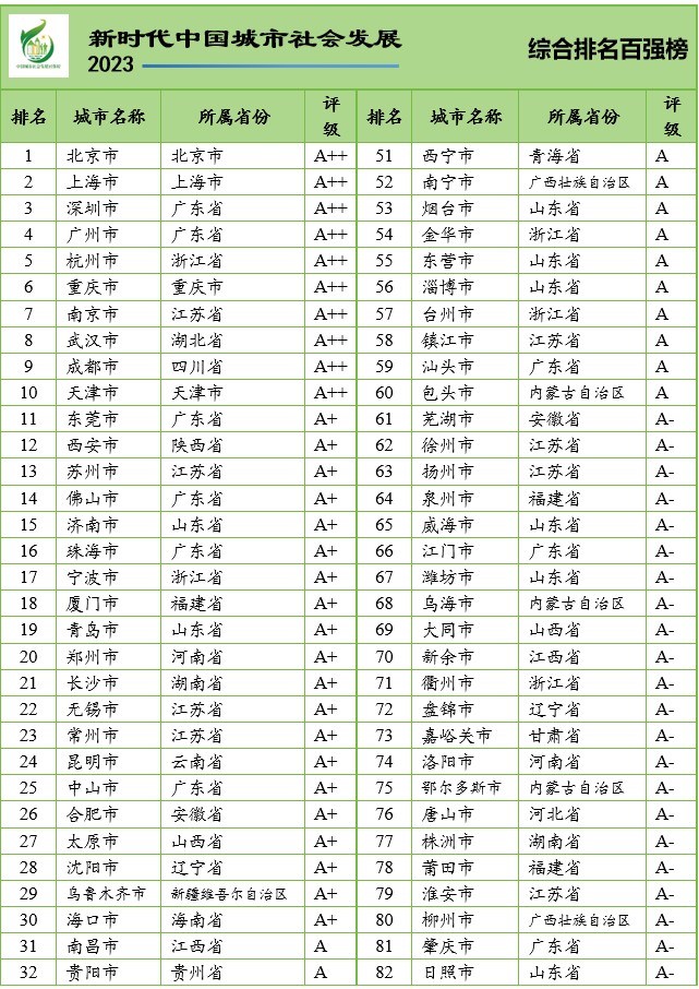 【相关链接】新时代中国城市社会发展综合排名百强榜