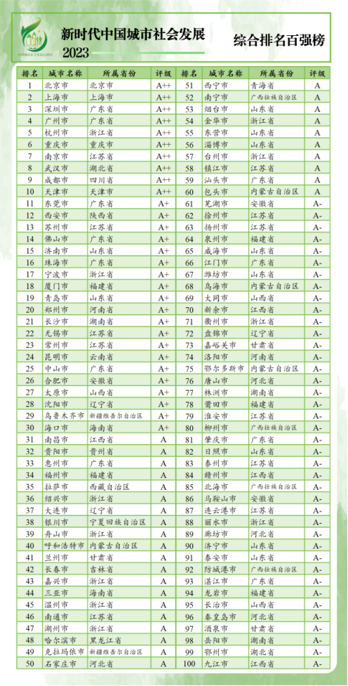 新时代中国城市社会发展指数暨百强榜(2023)