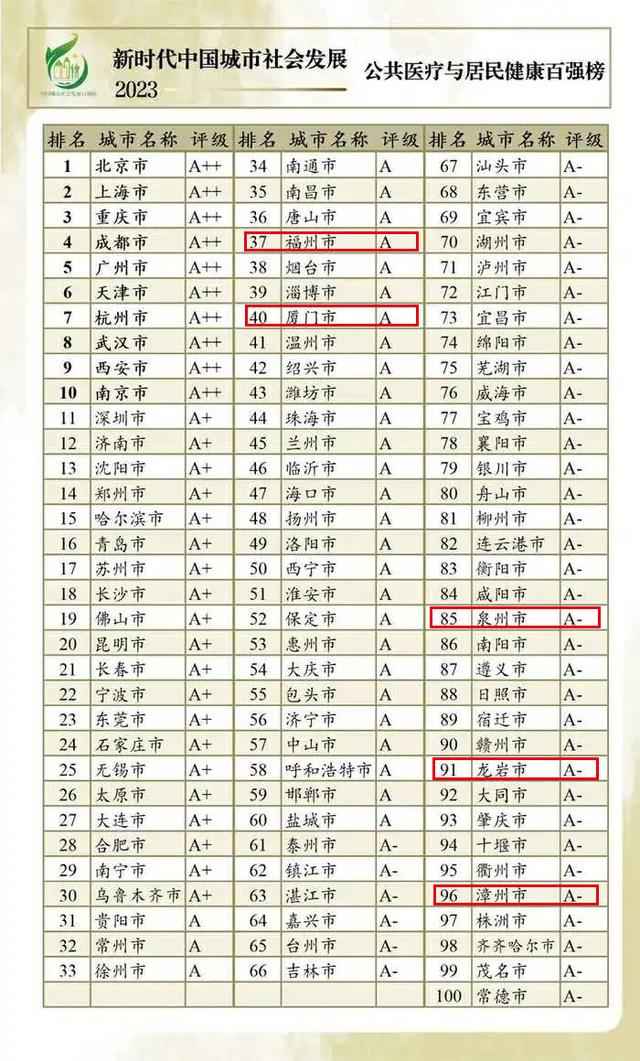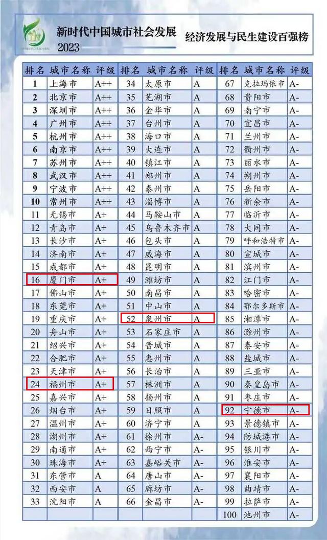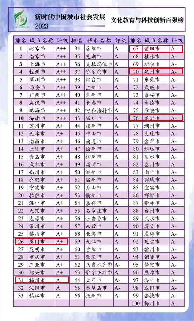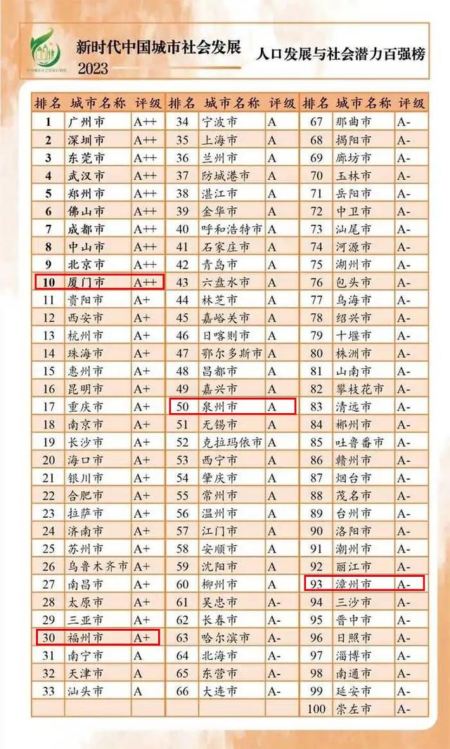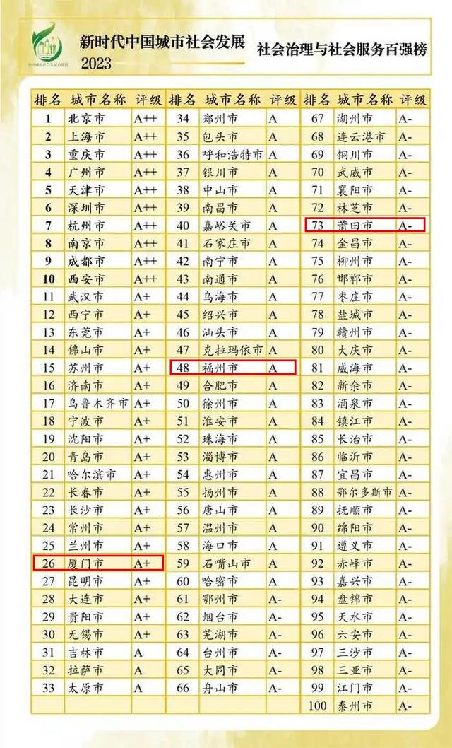 12月25日,“新时代中国城市社会发展指数暨百强榜(2023)”出炉,福建多地上榜。