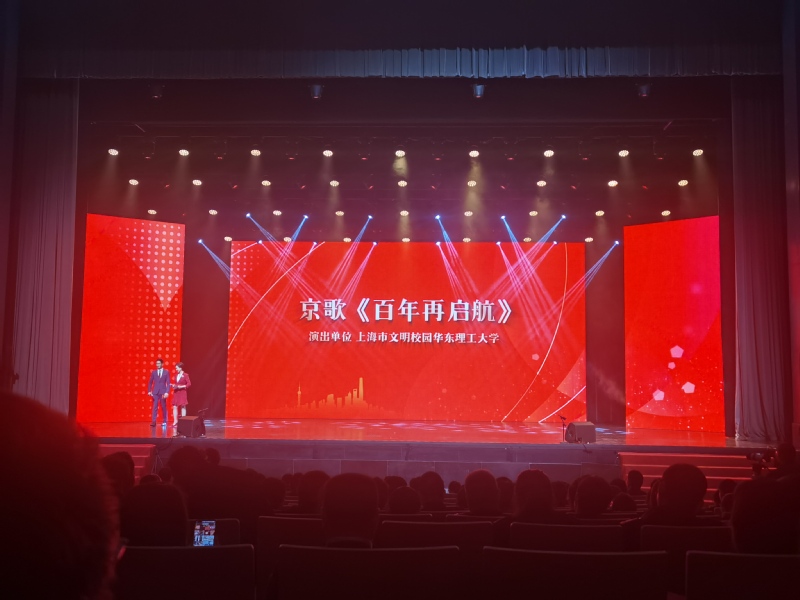 1月11日下午,“我们的上海”2023年城市文明风采季闭幕式暨市民修身成果展演在北外滩友邦大剧院举行。本次活动分为“文化思想引领、楷模典型辈出”“彰显城市精神、弘扬时代新风”“聚焦中心大局、更好服务发展”“坚持利民惠民、共建人民城市”四个篇章,精选来自全市各区及各行各业报送的文艺节目进行展演。受上海市精神文明建设委员会办公室邀请,我校京歌《百年再启航》参加展演。