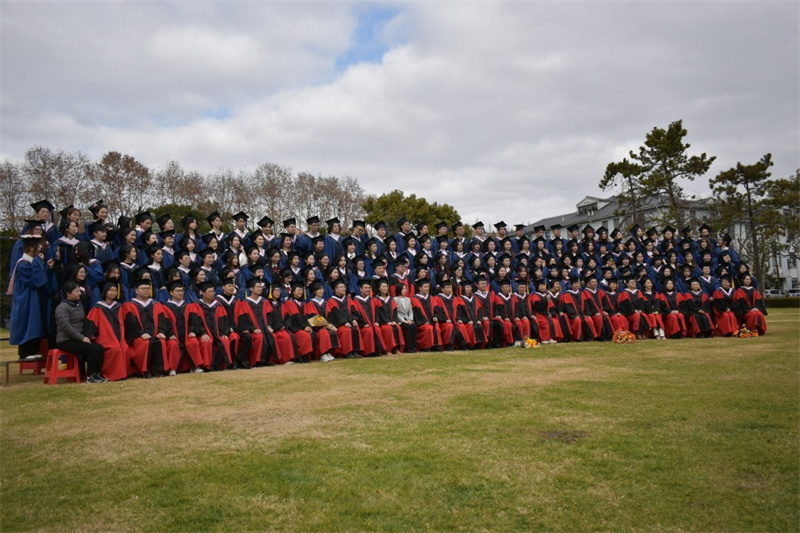 毕业典礼伴随着校歌声落下帷幕。会后,师生共同移步至大草坪合影留念。