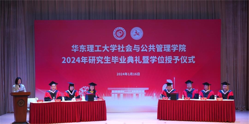 1月16日,社会与公共管理学院隆重举办2024年研究生毕业典礼暨学位授予仪式。研究生院副院长郁惠蕾,社会与公共管理学院党委书记张广利,院长何雪松,党委副书记储琰,副院长杨发祥、陈丰、刘晓亮以及全体研究生导师出席此次典礼。毕业典礼由社会与公共管理学院党委副书记万胤婕主持。