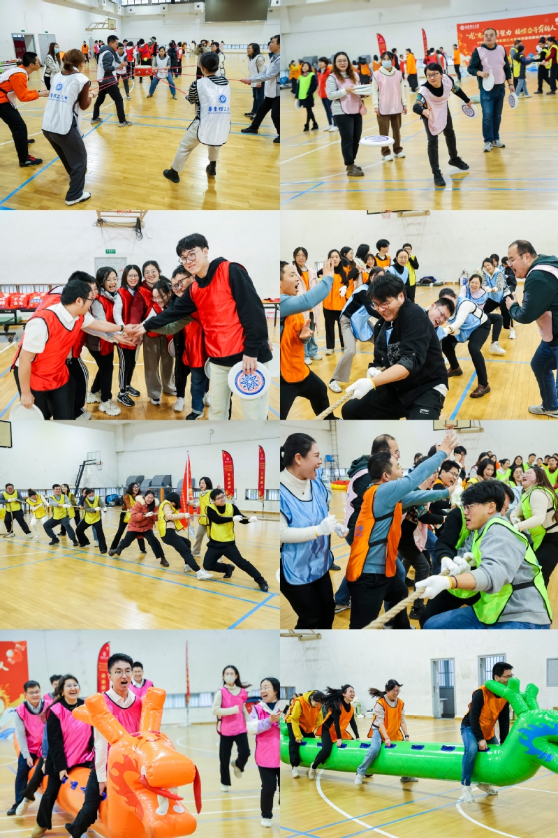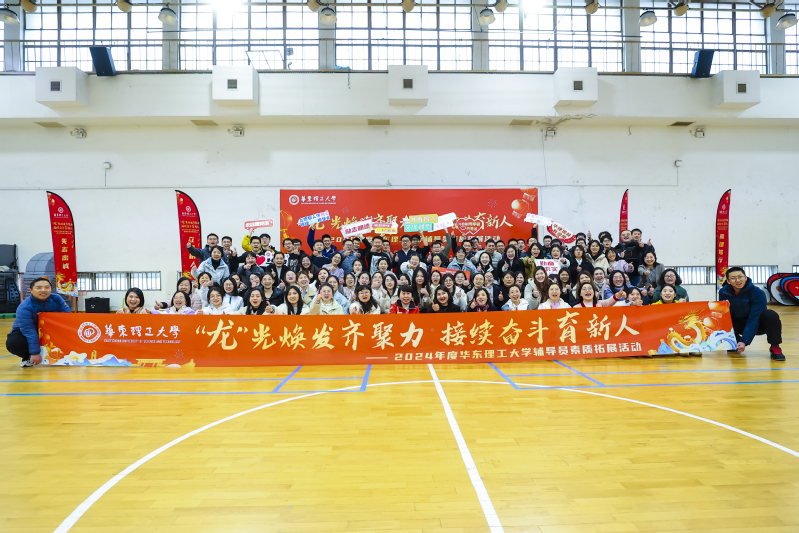 当天下午,学校在徐汇校区体育馆开展了2024年度“‘龙’光焕发齐聚力,接续奋斗育新人”辅导员素质拓展活动。经破冰分组,百余名辅导员,学工部、研工部和团委相关职能部门的教师们组成8支队伍,通过“一飞冲天”飞盘挑战赛、“力拔山河”拔河赛、“万众一心”颠鼓计数赛、“砥砺前行”龙形道具骑行赛等多个趣味竞技环节,在放松身心、相互合作中提升了学校辅导员队伍的团结协作精神和集体凝聚力。