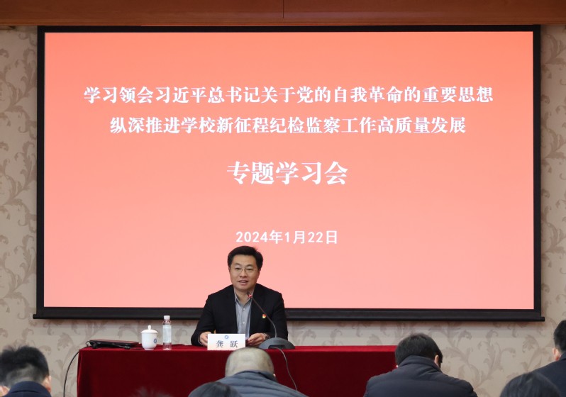 龚跃指出,要把学习贯彻习近平总书记关于党的自我革命的重要思想作为当前和今后一项重要政治任务,学懂弄通做实,结合本单位实际,研究贯彻落实的具体举措,精心谋划2024年工作。要准确把握持续发力、纵深推进的重要要求,不断巩固拓展主题教育和教育整顿成果,推进政治监督具体化精准化常态化,强化党的纪律建设,落实中央八项规定精神,强化管党治党政治责任,一体推进“三不腐”,推进政治巡察,抓好纪检监察机关自身建设,确保各项任务抓到底、抓到位,推动学校全面从严治党体系建设,为学校“双一流”建设和事业高质量发展提供坚强保障。