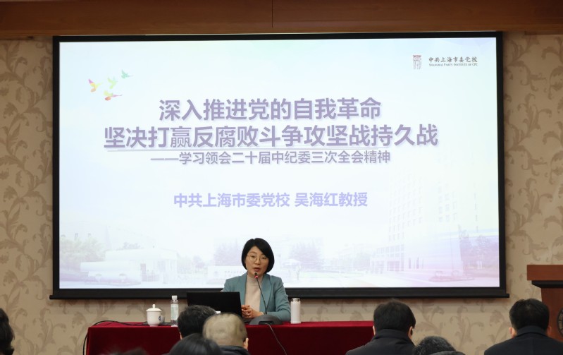 市委党校吴海红教授受邀作题为“深入推进党的自我革命,坚决打赢反腐败斗争攻坚战持久战”的专题辅导报告,以学理阐述、翔实数据和生动实例,对习近平总书记关于党的自我革命的重要思想、铲除土壤条件深化反腐败斗争和常态长效深化落实中央八项规定精神三个方面进行了深入阐释。纪检监察巡察干部表示,要深学细悟习近平总书记关于党的自我革命的重要思想,准确把握其中蕴含的精髓要义和实践要求,争当自我革命的表率、遵规守纪的标杆。