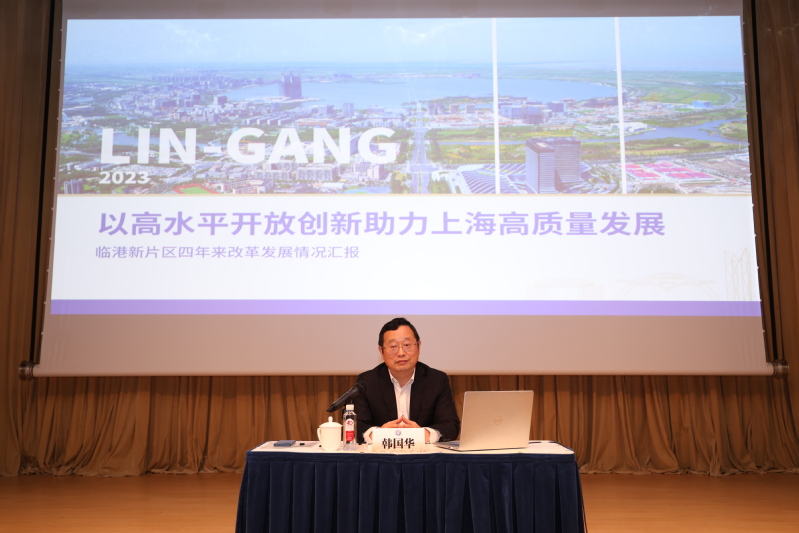 韩国华围绕“以高水平开放创新助力上海高质量发展”从临港新片区的设立背景、经济发展情况、制度型开放体系、前沿产业集群、对外开放等多个方面交流了临港新片区近年来的改革发展情况。他指出,临港新片区努力构建高水平开放体系,做强上海高质量发展引擎,在制度创新、科技创新、特殊经济功能增强、现代化新城建设、优化开放型营商环境等多个方面取得一定成绩。他提到,希望能够进一步深化产教融合,吸引更多华理优秀人才投身临港新片区的发展实践,针对产业链重点环节和产业关键核心技术,对照“卡脖子”问题,坚持科技创新自立自强,推动多领域全产业链国产化,更好实现临港高质量发展。