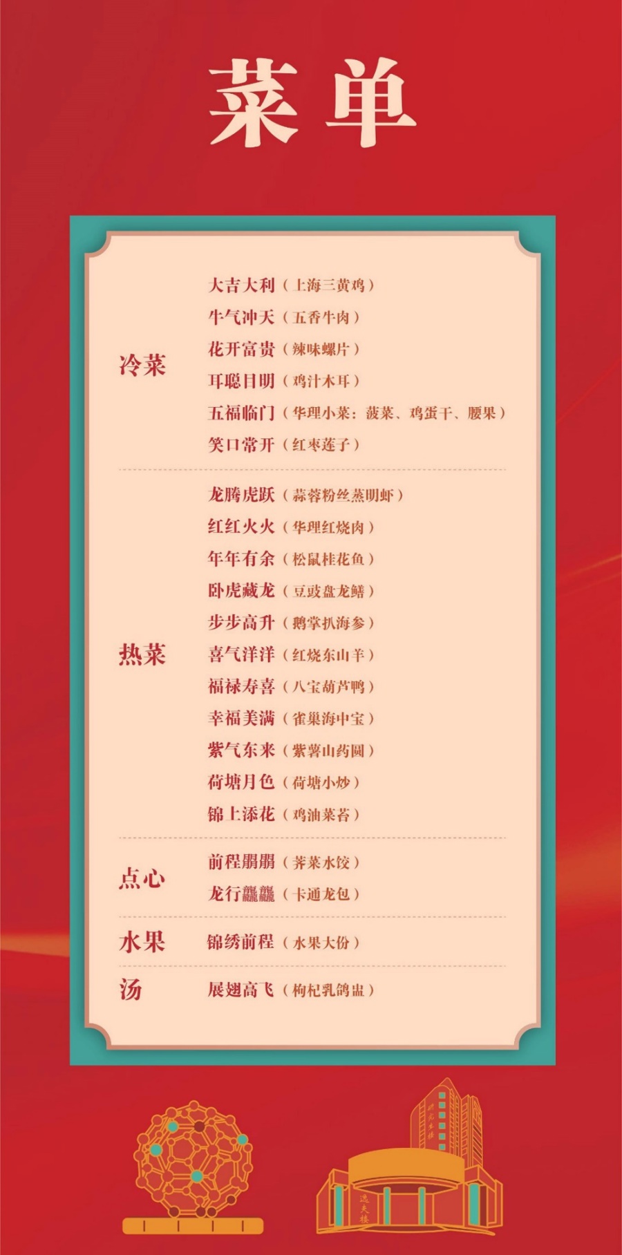 从“龙腾虎跃(蒜蓉粉丝蒸明虾)”,到“红红火火(华理红烧肉)”,再到“卧虎藏龙(豆豉盘龙鳝鱼)”,在小年夜师生新春年饭活动的大菜之外,华东理工大学每年都在除夕中午和晚上、大年初一至初三的中午和晚上,为留校同学提供新年爱心餐。今年的餐券由勤工助学指导中心创意工作室成员,来自艺术学院数媒220班的朱可纯同学设计。谈到设计理念时候,她表示:“期望通过穿梭于华理的祥龙营造出一种庄重而又温馨的氛围,祝愿全体师生2024年携手共进、再谱新篇。”