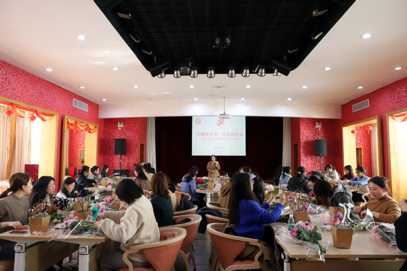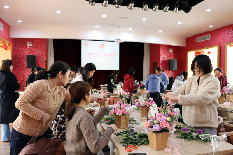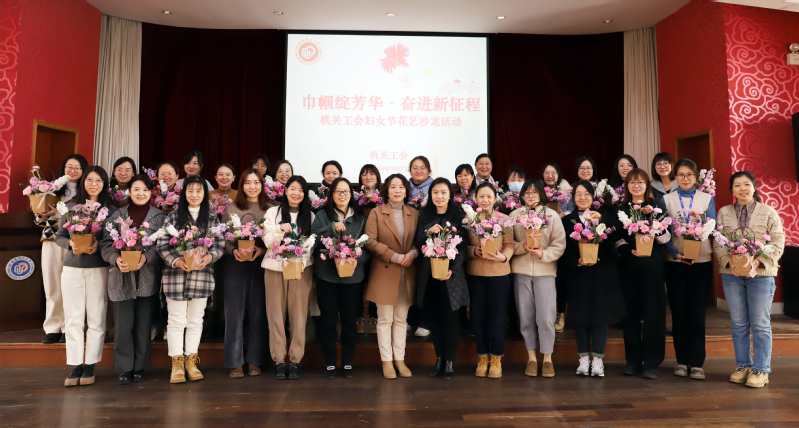 阳春三月,花香四溢。为营造快乐工作、健康生活的氛围,激励广大机关女教工立足岗位建功立业,3月7日中午,机关工作党委、机关工会、机关团总支联合在徐汇校区八角亭二楼举办了“巾帼绽芳华·奋进新征程”插花艺术分享活动。30名机关女教工齐聚一堂学艺献艺,在感受花艺魅力中喜迎第114个“三八”国际劳动妇女节。