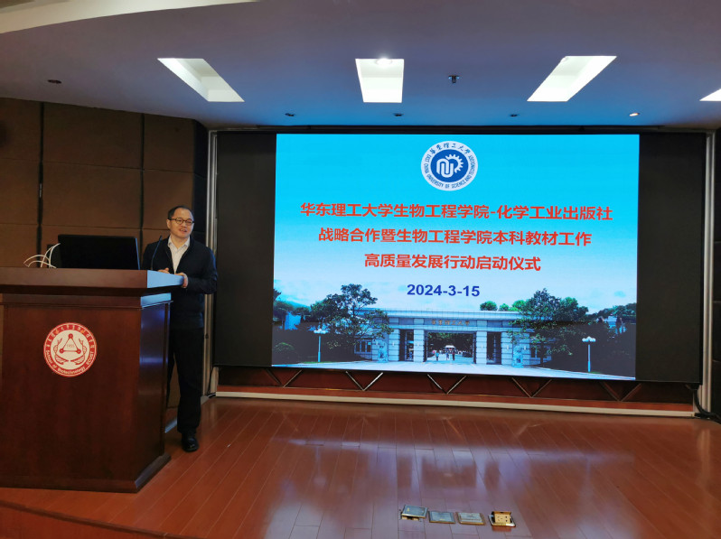 3月15日,生物工程学院与化学工业出版社签署本科教材战略合作协议,计划未来1至2年内合作出版16本教材,同时启动学院本科教材工作高质量发展行动,助力生物工程学院的一流本科课程建设。生物工程学院院长叶邦策、各教材主编、核心团队及学院青年教师20余人参加会议,会议由副院长王启要主持。