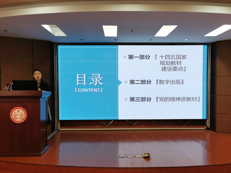 随后,赵玉清作题为“高等教育与教材出版思路探讨—如何做好‘十四五’国家级规划教材建设”的学术报告,报告从国家“十四五”规划教材建设要点、数字出版、党的精神进教材三个方面进行讲解,梳理教材编写规划要点,从价值引领、需求导向、分类发展、守正创新等方面逐一介绍。她还针对示范性新形态教材的定义和编写理念重点做了介绍,指出教材编写要体现创新性、数字化、立体化,把党的二十大精神写进教材,体现习近平新时代中国特色社会主义思想,把过去五年和新时代十年伟大变革中的榜样力量、有突出贡献的科技成果和关键技术,把绿水青山理念、“双碳”目标、健康中国2030、大食物观、大健康等理念写入教材,展现新时代中国科技发展的伟大成就,展现绿色发展理念,提升社会责任感。
