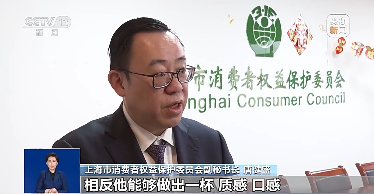 上海市消费者权益保护委员会副秘书长 唐健盛:我们发现酸奶只加了很少一部分,相反他能够做出一杯质感、口感都很像酸奶的东西,他到底往里面加了什么?我想这就是消费者知情权的保障。