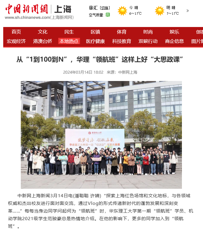 【中国新闻网】从“1到100到N”,华理“领航班”这样上好“大思政课”