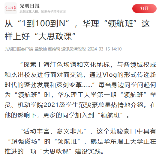 【光明日报客户端】从“1到100到N”,华理“领航班”这样上好“大思政课”