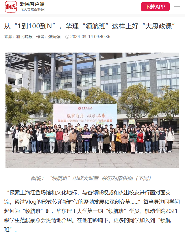 【新民客户端】从“1到100到N”,华理“领航班”这样上好“大思政课”