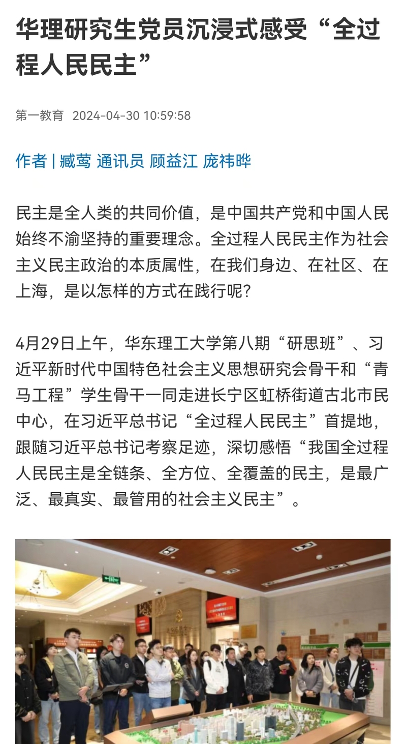 【第一教育】华理研究生党员沉浸式感受“全过程人民民主”