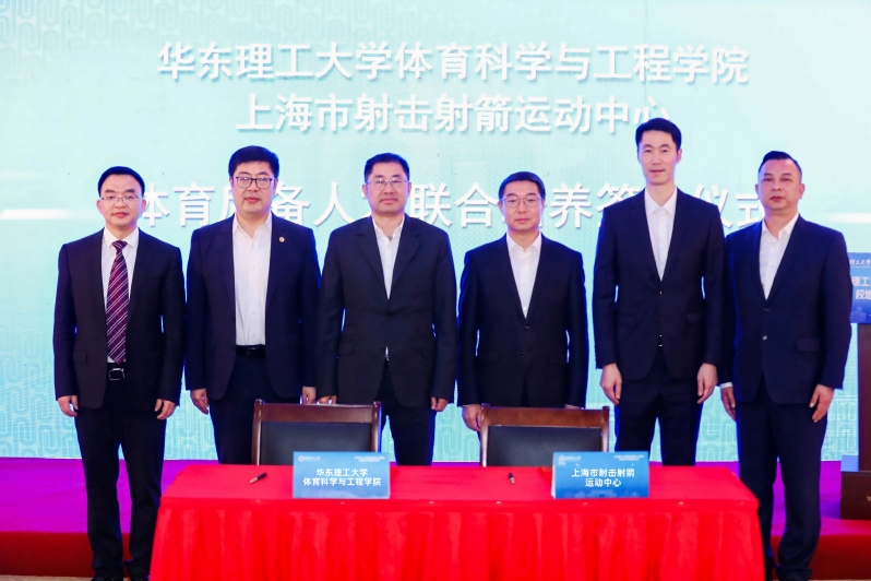 叶心明、许嵘分别代表华东理工大学体育科学与工程学院、上海市射击射箭运动中心签署协议