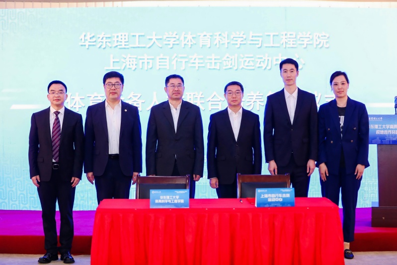 叶心明、陆叶分别代表华东理工大学体育科学与工程学院、上海市自行车击剑运动中心签署协议