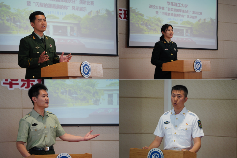 5月14日下午,华东理工大学首届退役大学生士兵“参军报国军魂永驻”演讲比赛暨“闪耀的星最美的你”风采展示评选活动在徐汇校区大学俱乐部青春苑举行。上海市国防教育协会副会长楼陆建、上海市国防教育协会秘书长徐捷、上海市国防教育协会常务副秘书长、同济大学教授张国清、徐汇区人民武装部副部长任成钢、徐汇区退役军人事务局副局长王柳君、徐汇区融媒体中心副主任黄文彬,校党委学生工作部(处)部(处)长崔姗姗以及各学院推荐的优秀退役大学生代表参加,活动由党委学生工作部(处)(武装部)副部长饶志雄主持。