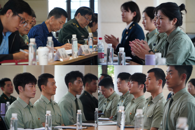 陈秋生同学分享了作为一个曾经的“差生”,如何在军营的历练中,实现自我超越的故事,复学后跨专业考研,取得了438分的总成绩,目前已经被复旦大学大数据学院录取。梁之同分享了自己前往边境参与边防斗争,守卫祖国西陲,在西藏以冰为友,与雪做伴,于苦寒之地苦练杀敌本领,淬炼打赢信心,以血肉之躯和钢铁意志谱写新时代卫国戍边新篇章的故事。王梓安同学提到,退伍的我们如烟火般散落祖国各地,但我们仍将秉持初心,扬帆破浪再起航。王京龙在部队参与30多次重大保障任务,复学后在疫情防控期间,组织成立“迷彩绿”青年先锋队,冲锋在疫情防控一线,为学校疫情防控工作贡献力量。退役大学生们在军旅生涯的淬炼中蜕变与成长,涵养了家国情怀,锻造了坚毅品质,诠释了使命担当,点亮灿烂青春,走向成熟与坚定;回到学校后,他们不忘初心跟党走,继续发扬解放军优良传统,矢志成为强校兴国的中坚力量。