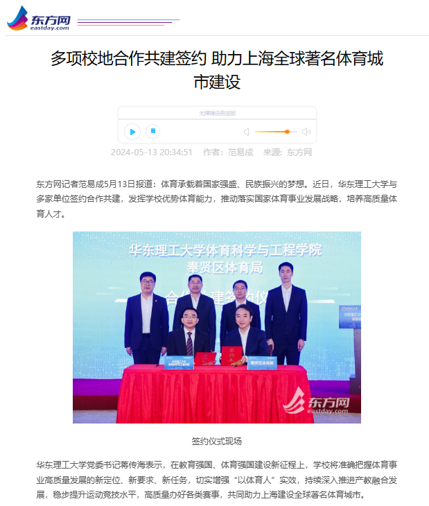【东方网】多项校地合作共建签约 助力上海全球著名体育城市建设