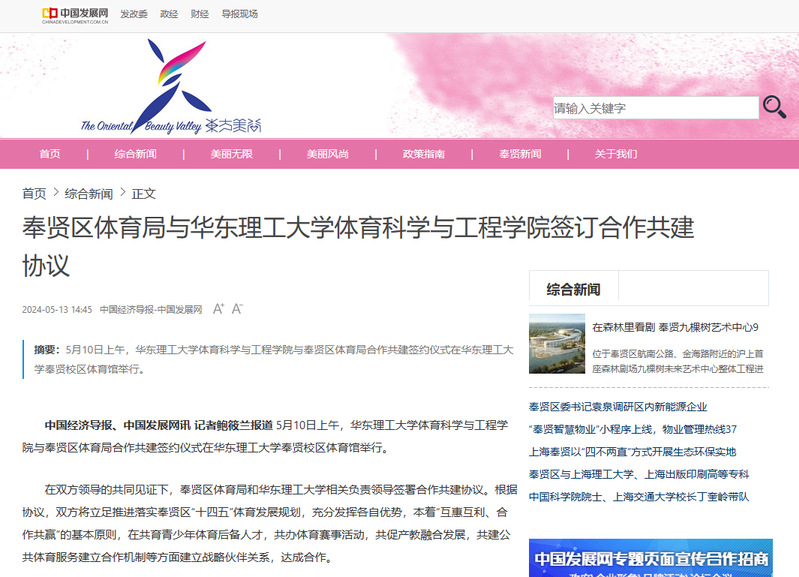 【中国发展网】奉贤区体育局与华东理工大学体育科学与工程学院签订合作共建协议