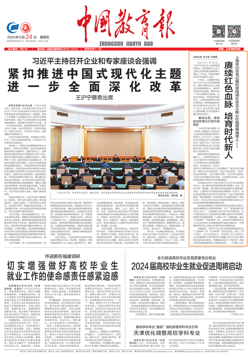 “上海教育系统将始终牢记习近平总书记的殷殷嘱托,聚焦思政课关键课程、课程思政关键环节、日常思政关键领域等,着力把校内外丰富的红色资源转化为育人资源,绵绵用力、久久为功,全力推进大中小学思想政治教育一体化建设,为服务建设习近平文化思想最佳实践地,弘扬社会主义核心价值观作出新的贡献。”上海市教卫工作党委书记沈炜表示。