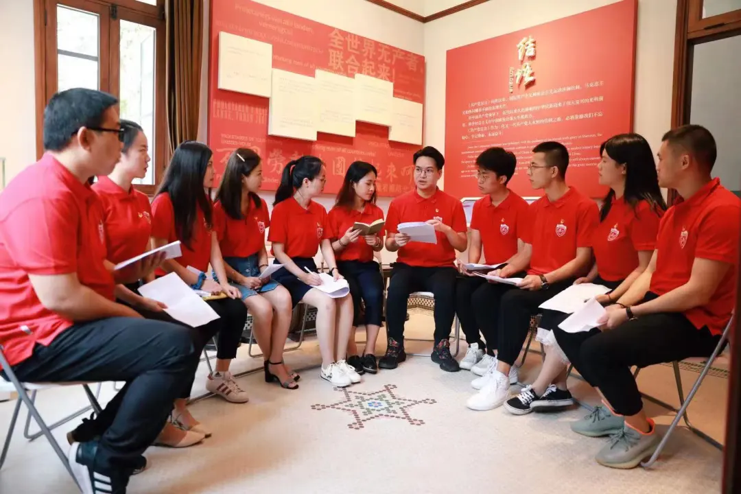 复旦大学“星火”党员志愿服务队传承红色基因,在《共产党宣言》展示馆集体备课(摄影:成钊)