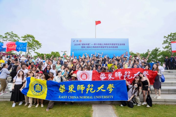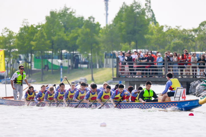 “喧江雷鼓鳞甲动,三十六龙衔浪飞。”5月25日,华东理工大学奉贤校区通海湖上热闹非凡。2024年“感知中国”——第十四届上海高校外国留学生龙舟赛暨第二届长三角高校外国留学生龙舟邀请赛隆重开赛。34支队伍、106个国家、765名参赛选手,来自复旦大学、南京理工大学、浙江大学、中国科学技术大学等江浙沪皖地区的留学生龙舟队挥桨竞逐,吸引了数千名观众汇集在通海湖畔一睹盛况。